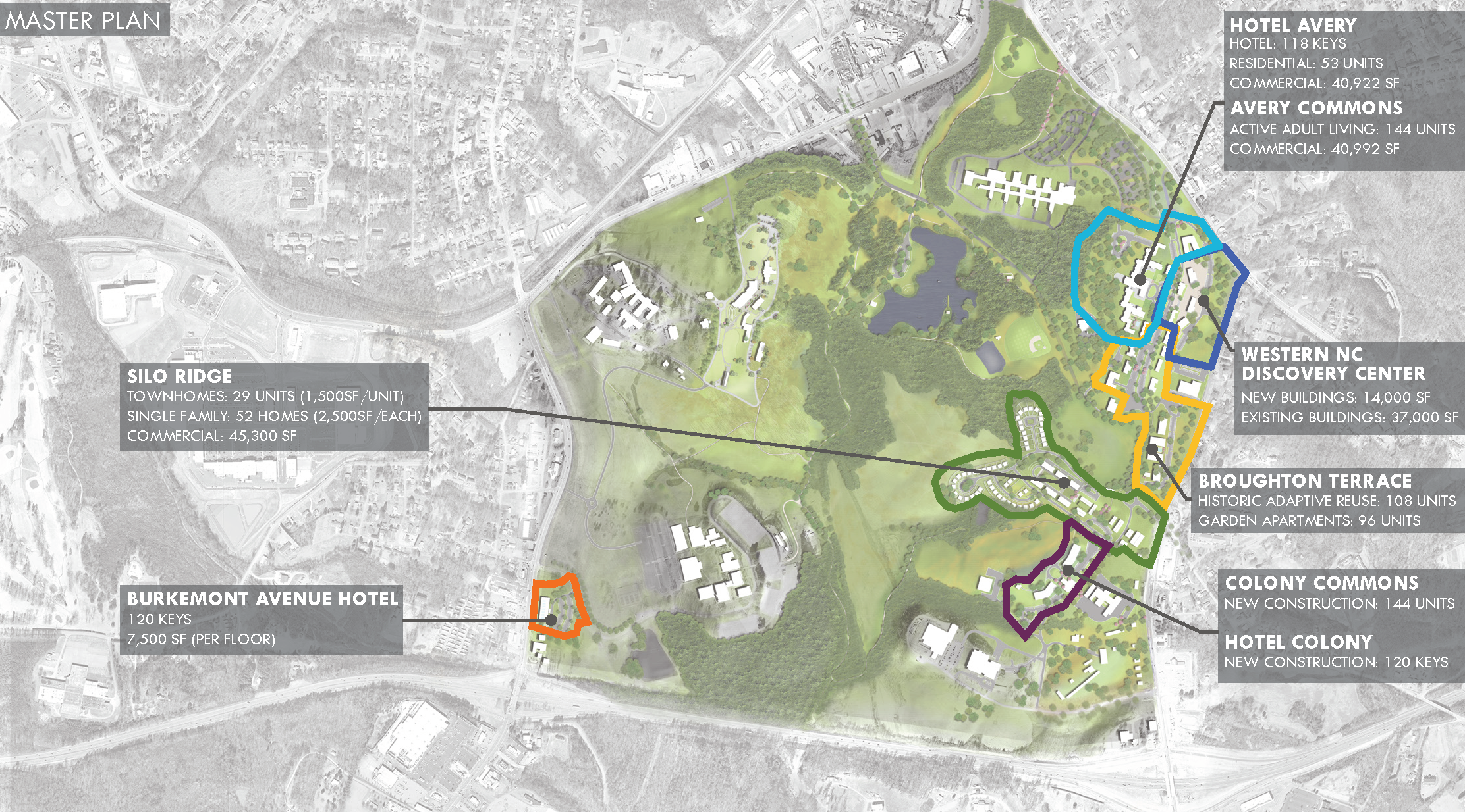 The hospital functions currently located in the Historic Broughton Hospital campus in Morganton and Burke County, North Carolina, are expected to move to a new facility on adjacent property. This will leave more than 600,000 square feet (SF) of vacant or underutilized space in well-maintained historic buildings, some of which are over a century old. Recognizing the scale of the challenge, the North Carolina General Assembly directed a study of potential uses of the historic campus and adjoining State property, 800 acres in total, to include analysis of the costs and benefits of different redevelopment approaches.